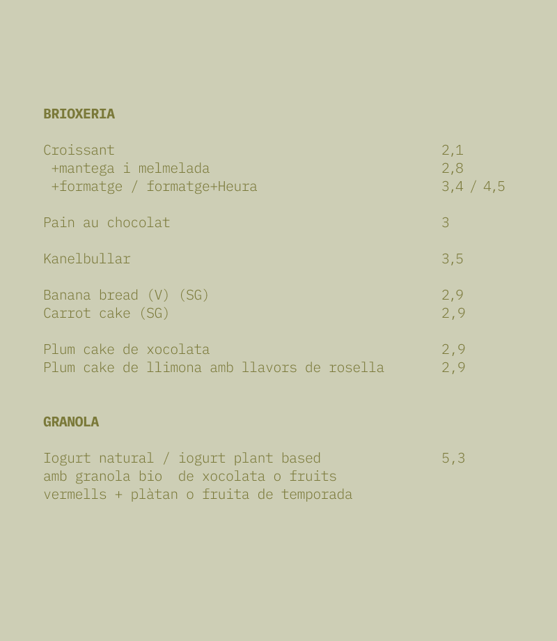 Brot Cafè Menu